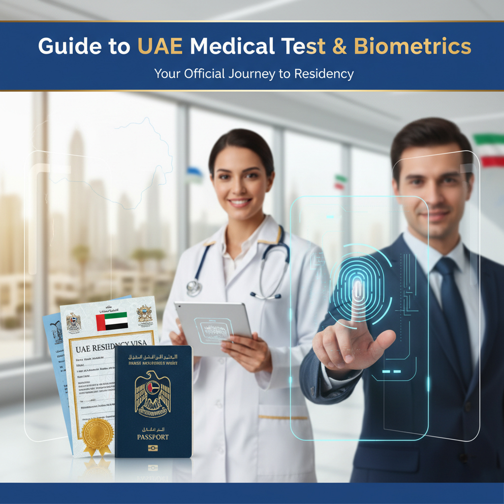 A complete guide to UAE medical test and biometrics requirements, covering health screening, Emirates ID fingerprinting, and visa verification steps.